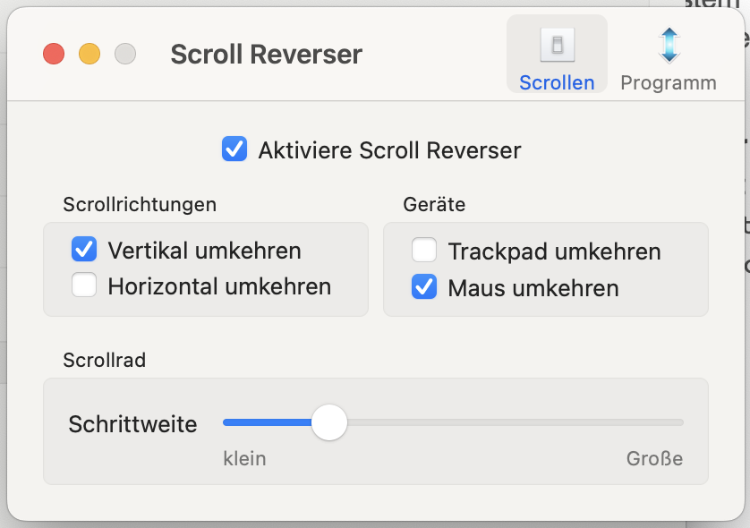 Im Moment gewöhne ich mich noch an meinen neuen Mac und seine Eigenarten. macOS ist doch an vielen Stellen ganz anders als Windows. Zum Beispiel kann ich die Scrollrichtung von Maus und Trackpad nicht getrennt voneinander einstellen. Da ich in der Schule mit Windows arbeite, macht mich das WAHNSINNIG.